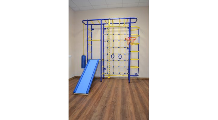 Баскетбольное кольцо, боксерская груша, трапеция, тарзанка, веревочная лестница, турник с широким хватом, мат спортивный,
